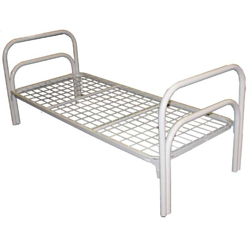 Кровать белая односпальная, на металлической основе. Подойдет для оснащения гостиничных номеров, медицинских организаций, домохозяйств. Ширина 800 мм.