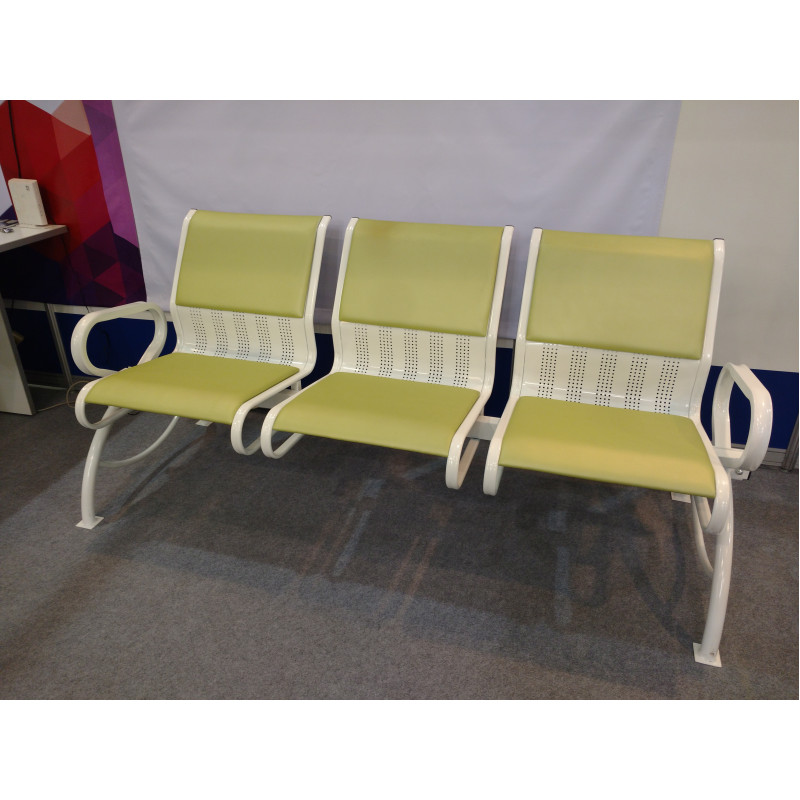 Секция стульев с мягкими вставками, 3-х местная, с подлокотниками. Состоит из балки с сиденьями, съёмных опор и мягких накладок.