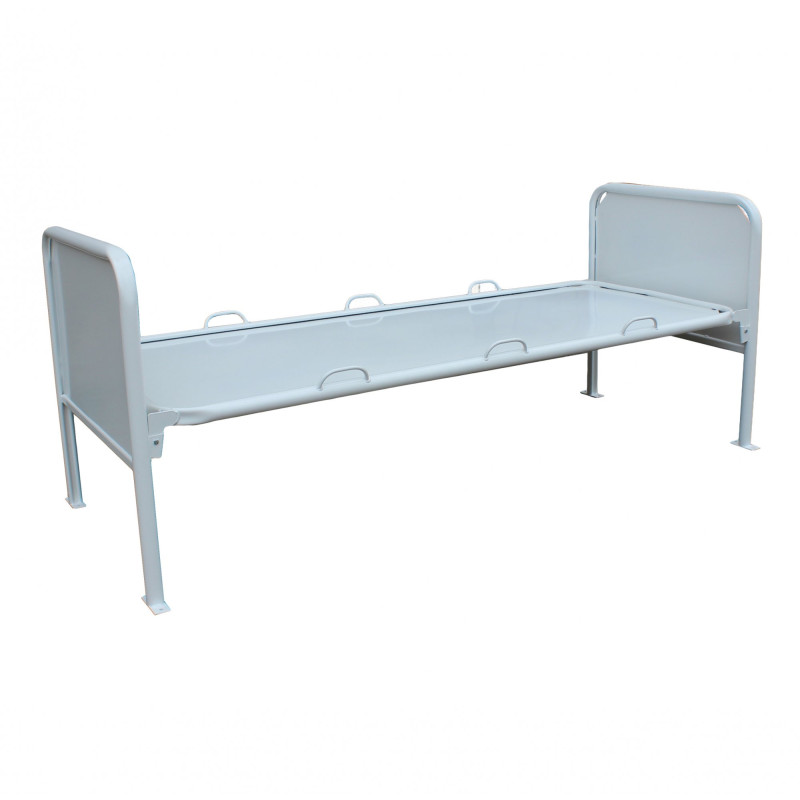 Кровать медицинская общебольничная для учреждений здравоохранения. Цвет белый, основание - стальной лист.