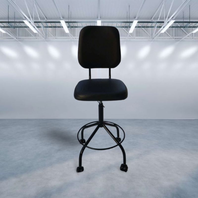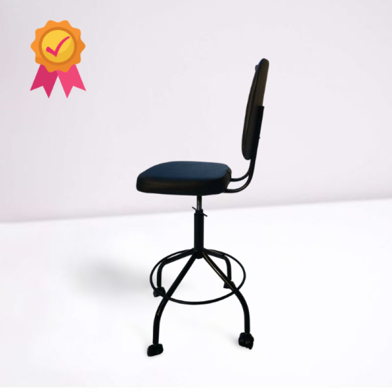 Стул лабораторный М 101ПК ФОСП ( Высота подъёма от пола до сидения 440-560 мм. Сидушка мягкая шитая - поролон 40 мм., Спинка трапецевидная эргономическая. Цвет-полимерного покрытия металла - черный глянец, цвет обивки - чёрный кожзаменитель. Колёса мебельные усиленные с болтовым соединением. Механизм свободного вращения верхней части стула (Подшипник, вращение без задействования винта. Внутренняя и внешняя резьба не стачивается (увеличивает срок службы винта и резьбы до 5-ти лет) . Фиксатор подшипника.)