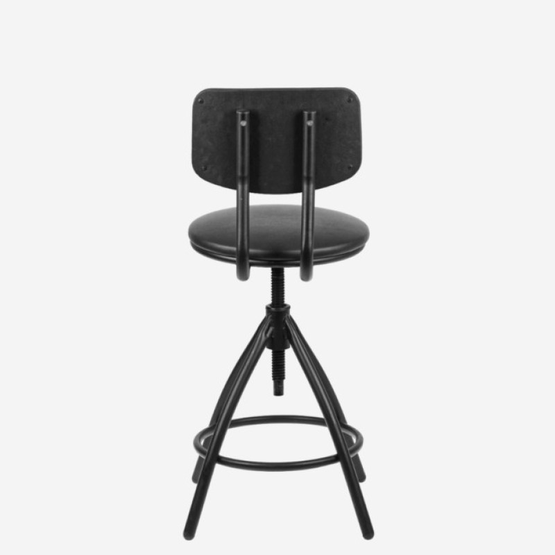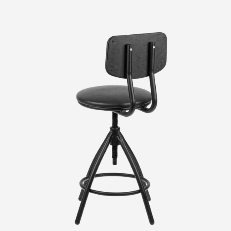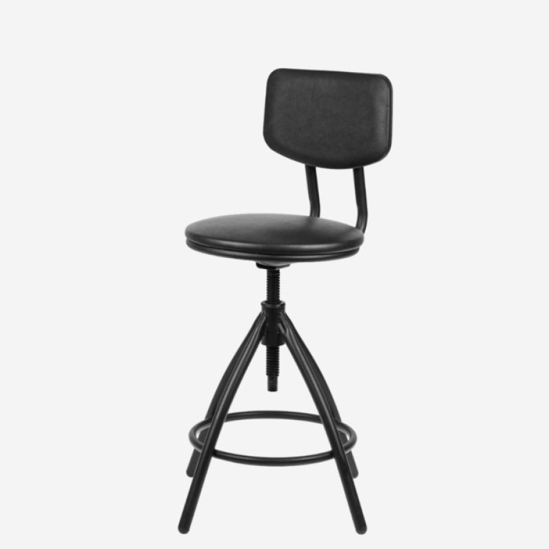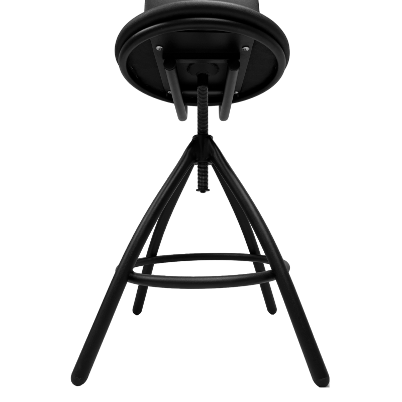 Стул винтовой на металлической каркасе с пластиковыми заглушками и регулировкой по высоте. Ножка усиленная с кольцом для ног. Кольцо усиления по сидением. Габариты (ШхГхВ) изделия: 400х490х890-1010 мм., Сиденье :Ø 380 мм., Спинка эргономическая (ШхВ): 340х320 мм., Высота регулировки от пола до сиденья: 570-690 мм. Винт - стальной стержень Ø29 мм с резьбой и гайкой из стеклонаполненого полиамида, резьба прямоугольная с шагом 6 мм, высота резьбы-2мм, что дает большую степень сцепления. Диапазон регулировки 190 мм.